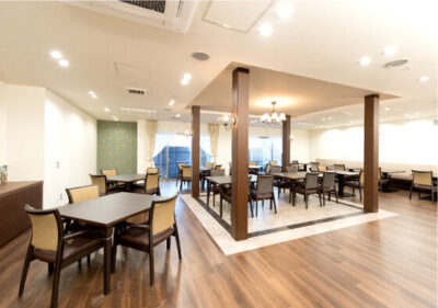 ロビー、フロント、エレベーター、ナースコール、スタッフルーム、メールボックス、パーティールーム、サークル・クラブルーム、共用トイレ、厨房室、各室インターホン設備(ナースコールとは別)、囲碁、多目的室、将棋、洗面室、玄関ホール、談話室、車椅子用トイレ、避難設備、防災設備、集会室、風除室、ダイニングルーム(食堂)、駐輪場