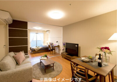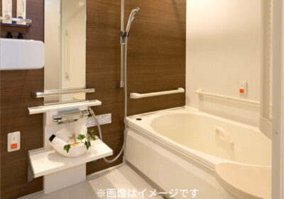 トイレ、エアコン、キッチン、シャワー、クローゼット、ナースコール、フローリング、フラットフロア、化粧洗面台、収納スペース、地上波アンテナ、引き戸式ドア(居室内)、折りたたみ椅子、インターネット接続口、浄水システム、浴室、浴室暖房乾燥機、温水洗浄機能付きトイレ、物干しベランダ、玄関インターホン、車椅子対応トイレ、車椅子対応洗面化粧台、避難設備、鏡、間接照明、電磁調理器、電話回線、靴箱